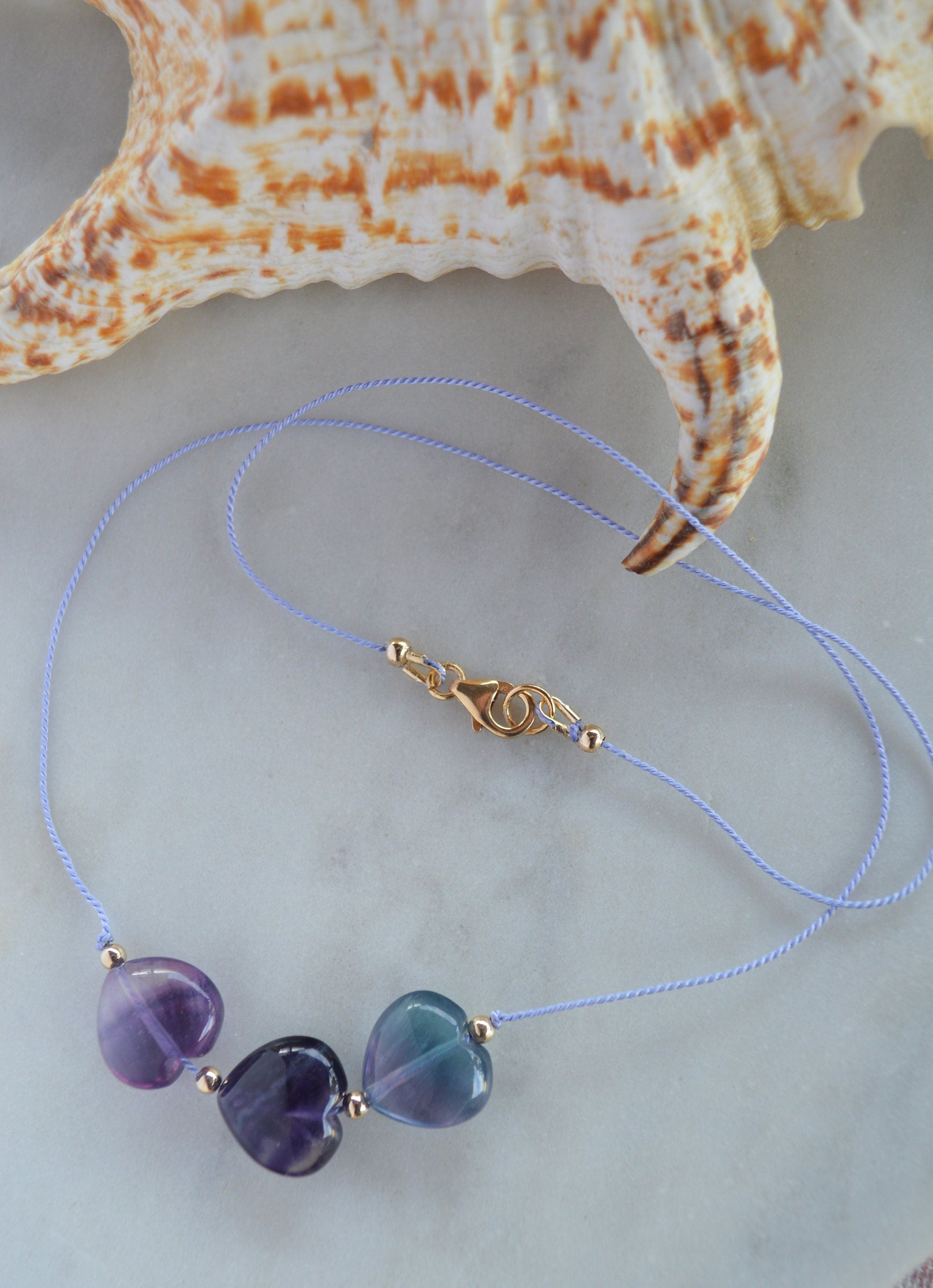 We highly recommend that you remove your jewelry while sleeping, showering and swimming. After removing your jewelry, gently wipe with a dry cloth to maintain it’s beauty. Avoid any chemical exposure, ie; sweat, lotions, perfumes, chlorine, sunscreen,.Please store hand knotted pieces flat—do not hang. While we wet and then pre stretch the silk used in knotting, hanging will ultimately stretch your pieces over time as well as abrade the silk.
