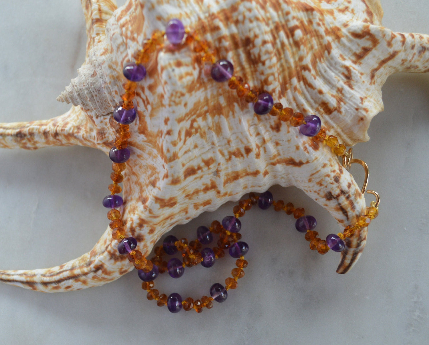 Colorful Purple, Lavender, Hot Pink and Rose Quartz Hand Knotted Necklace on Custom Amethyst Silk. Sterling Silver Clasp. Choose 18" to 22"